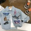 Camisa jeans de gato dos desenhos animados da menina Primavera e Outono Estilo Coreano Masculino Bebê Outono Camisa Manga Comprida Casaco de Grafite Comércio Exterior