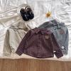 Loja de Algodão Camisa de Outono Top Estilo Coreano Roupa Infantil 2025 Outono Novo Camisa Xadrez Moderna Versátil Caimento Solto