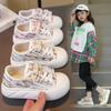 Meninas tênis Novo 2025 Primavera Crianças Bonitos Desenhos Animados Board Shoes Meninas Sapatos Casuais Estudantes Pequenos Sapatos Brancos Maré