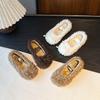 Sapatos de Algodão Quente Veludo Simples para Meninas 2025 Inverno Novo Slip-On de Solado Macio Sapatos Gorro Estilo Ballet Sapatos Peludos