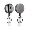 Chaveiro retrátil de metal cinza com galvanoplastia preta de 4 cm, fivela fácil de puxar, anti-perda, alta elasticidade, fivela de identificação fácil de puxar