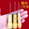 Agulha de perfurar cabo de madeira agulha de sola abridor de furo em couro ferramenta de couro feita à mão furador de cabo de madeira ferramenta DIY cone gancho reto