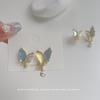 Versão coreana de brincos de asas de anjo, clipe de orelha personalizado, brincos de clipe de orelha de pérola de diamante de vento frio, atacado [único]]