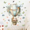 Balão de Ar Quente Gato Aquarela Adesivo de Parede Borboleta Pássaro Plantas Verdes Decoração de Casa Autoadesivo Impermeável Removível Adesivo Quente