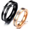 Anel Arvaleff de Titânio Coração Esmalte Preto Ouro Rosa Incrustado com Diamantes Largura 6mm Anel Popular Europeu Americano para Casal Obra