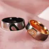 Anel Arvaleff de Titânio Coração Esmalte Preto Ouro Rosa Incrustado com Diamantes Largura 6mm Anel Popular Europeu Americano para Casal Obra