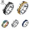 Anel de Corrente de Aço Titânio da Moda Popular Europeia e Americana Masculino Giratório Estilo Hip-Hop Cerveja Anel de Casal Joias Atacado