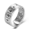 Anel de Mahjong Estilo Étnico Prata Tailandesa Preta Vintage Anel Paramita Heart Sutra de Treze Peças Estilo Leste e Sul