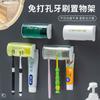 Armazenamento de banheiro, espremedor de pasta de dente, porta-escovas de dentes, multifuncional, sem perfuração, de parede, plástico, copo para enxaguatório bucal