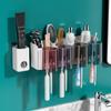 Porta-Escovas de Dentes Banheiro Montado na Parede Sem Furos Dispensador Automático de Pasta de Dentes Conjunto de Copos para Enxaguante Bucal Mais Vendido Transfronteiriço