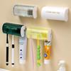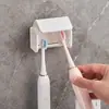 Armazenamento de banheiro, espremedor de pasta de dente, porta-escovas de dentes, multifuncional, sem perfuração, de parede, plástico, copo para enxaguatório bucal