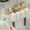Suporte para escova de dentes sem perfuração Suporte para copos de enxaguatório bucal de parede Suporte automático para pasta de dente Suporte para escova de dentes Armazenamento para banheiro