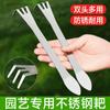 Novo ancinho para plantas em vasos, cabeça dupla, aço inoxidável, pequeno, ferramentas de remoção de solo, plantio de solo solto, pequeno ancinho feito à mão, capina de bonsai