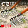 Ferramentas de jardim, ancinho de ferro, ancinho decíduo, ferramentas agrícolas, ancinho plano, ancinho giratório grande, ancinho soltor de solo, ancinho de prego de ferro de nove dentes