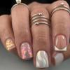 Flash Aurora ondulada unha curta cor mágica rosa temperamento branco destacável acabado folha de unhas estudante trabalhador de escritório