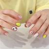 Fresco e adorável vento usar armadura pequena flor fluorescente amarelo curto estudante destacável unha arte falso pedaço atacado