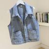 Roupas femininas azul claro 2024 Novo estilo coreano versátil sem mangas colete colete curto elegante fino