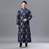 Robe Longo com Fechamento por Botão para Homens 2025 Estilo Chinês Algodão e Linho Roupão Masculino Retrô Fechamento por Botão Gola Alta Terno Tang Corta-vento Comprimento Médio