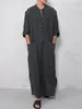 Novo Roupão Tradicional Árabe Masculino Muçulmano do Oriente Médio de Cor Sólida com Botão e Bolso