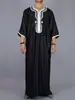 2025 Comércio Exterior Transfronteiriço Camisa Longa Masculina Casual Jovem Comum Preto Muçulmano Roupão Bordado 113824