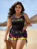 Novo cross-border europeu e americano tankini estampado plus size feminino shorts barriga capa conservador biquíni biquíni maiô atacado