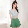 Saia Multicolorida Franzida com Design de Cordão de Ajuste Estilo Novo Europeu e Americano Shorts com Fenda Fato de Banho Tankini Feminino
