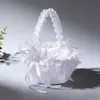 Cesta de flores de renda branca menina de flor espalhando flor pérola cesta de flores dama de honra portátil cesta de flores pequenas nova cesta de casamento ocidental