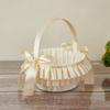 Novos Suprimentos para Casamento Estilo Ocidental Cesta de Flores com Alça Plissada Branca Cesta de Flores para Daminha de Honra Flor para Espalhar Pequena Cesta de Flores Decoração com Laço