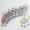 Carrinho de compras miniatura de simulação em aço inoxidável brinquedo infantil carrinho de supermercado decoração fofa carrinho de compras de bolso
