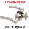Trava de maçaneta de três barras para banheiro, sem chave, furos superiores e inferiores internos, maçaneta universal para porta de banheiro, trava para banheiro