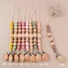 Novo Prendedor de Chupeta de Madeira de Faia Letra de Madeira de Faia Silicone de Bebê Contas Octogonais Fio Crochê Corrente Anti-Queda