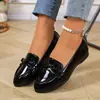 Sapatos Pequenos de Couro Estilo Britânico para Mulheres, Mocassins, Sapatos Simples Casuais de Couro Envernizado Preto para Outono e Inverno, Estilo Outono 2025, Tamanho 42