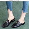 2025 Primavera e Verão Nova Moda Versátil Roupa Exterior Salto Grosso Sapatos Preguiçosos Sola Macia Antiderrapante Parte Superior em Couro Meio Chinelos Sapatos Femininos