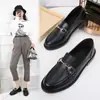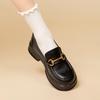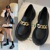 2025 Novo Estilo Mocassins de Solado Grosso com Saia Preto Primavera e Outono Flats Retrô Flats com Corrente Sapatos Pequenos de Couro Jk para Mulheres Tendência