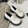 Sapatos Mocassins Retrô Brancos para Mulheres no Outono Estilo Britânico Versátil Solas Grossas com Saias Sapatos Pequenos de Couro Mary Jane Franceses