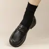 2025 Novo Outono Retrô Preto Sola Grossa Estilo Britânico Sapatos Pequenos de Couro para Mulheres Mary Jane Slip-On Mocassins