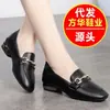 Sapatos pequenos de couro preto femininos 2026 novo estilo couro macio salto grosso francês versátil para o trabalho sapatos de mola mocassins de moeda de ouro