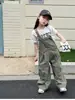 Macacão Casual Tendência Cool Estilo Coreano para Crianças Aimobibeibei Primavera 2026 Bolsos para Meninas Calça de Jardineira Estilo Workwear Retrô
