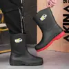 Botas de chuva anti-esmagamento com biqueira de aço, botas de chuva masculinas de cano alto, cano médio, calçados aquáticos industriais, proteção de trabalho, calçados de minerador, botas de chuva quentes antiderrapantes com chapa de aço, sapatos de borracha