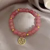 Pulseira de Flor de Pessegueiro Rosa Gelo de Madagascar Fresca e Doce com Contas de Transferência Rosa Cristal para Mulheres de Nicho de Luxo Leve