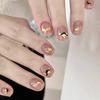 Unhas Postiças Populares do Xiaohongshu Atacado Outono e Inverno Curtas Francesas Blush Manicure Unhas Olho de Gato Unhas Postiças