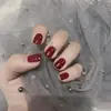 Moda desgaste unha glitter comércio exterior vinho vermelho unha patch unhas removíveis produto branco acabado atacado