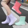 Botas de chuva de meia panturrilha clássicas botas de chuva femininas moda meia-panturrilha branco quente impermeável sapatos sapatos de borracha botas de água atacado
