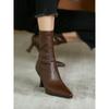 Botas stiletto europeias e americanas nude spliced botas skinny botas retrô marrons de cano baixo 2025 outono e inverno novas botas de cano baixo de salto alto bico fino