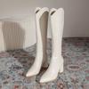 Botas Longas Brancas Femininas Salto Alto 2025 Novas Outono Inverno Bico Fino Pequeno Forradas com Lã Botas Acima do Joelho Salto Grosso Cano Alto