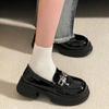 Sapatos de couro de sola grossa Primavera 2023 feminina novo muffin Francês retrô estilo britânico loafers um passo sapatos de camada única