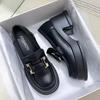 Plataforma de plataforma de couro macio Sapatos de camada única Perna Feminina Casual Estilo Britânico Sapatos de couro preto Verão Low-top All-match Loafers