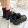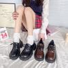 Cabeça redonda sapatos de sola grossa mulheres pretas estilo universitário sapatos de couro pequeno Coringa Inglaterra loafers jk sapatos uniforme uma geração de cabelo