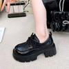 Sapatos Lefu Plataforma Preta Versátil Camada Única Femininos 2024 Primavera e Outono Novos Retrô Estilo Britânico Aumento Cadarço JK Sapatos de Couro Pequenos