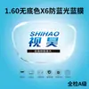 1.60 HD X6 sem fundo película azul anti-luz azul pode ser equipado com graus lente para miopia folha de resina atacado